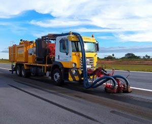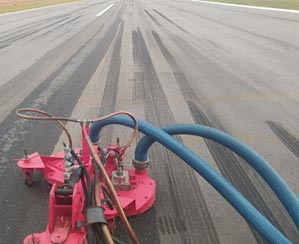 A Lavrita realizou o serviço de retexturização de pista do aeroporto com nosso equipamento Hidrovac Ultra para remoção de borrachas e remoção de sinalização de pistas.