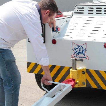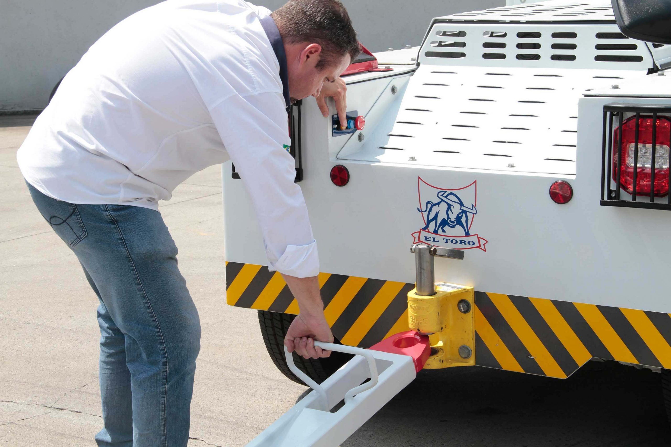 Com comando remoto traseiro, o trator para serviços aeroportuários “El Toro” pode ser operado por apenas um operador, sem a necessidade de ajudante.